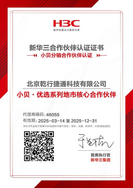 Standart:H3C certified agent Sayı:46055 Yayımlanma tarihi:2025-03-14 Bitiş tarihi:2025-12-31 Kapsam/Aralık:Sales of network equipment Tarafından verilen:H3C |